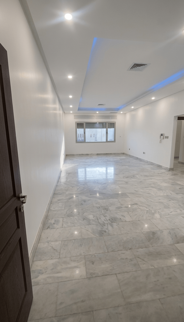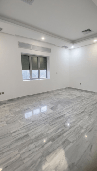 Hurry up! For rent: a large, luxurious apartment in Al Zahra. Large areas, super deluxe finishing, prime location with easy access. Second floor with elevator. It consists of 3 bedrooms, including 1 large master bedroom, a large living room with a guest bathroom, a fully equipped kitchen, a maid's room with its own bathroom, and a laundry room. Two car parking spaces. Opposite a mosque. Rent: 600 KD final. For contact.