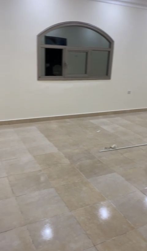 For rent a floor in Al - Shuhada, Piece 2. Large areas, 4 rooms, 2 master bedrooms, two halls with a bathroom and sink, kitchen, maid's room, first floor, staircase, air conditioning, water heater, central satellite, two car parking spaces, near services, easy entrance and exit. rent 900. New code 6446. For contact - commercial license number/ 1234 - 2013
