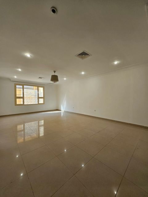 For rent: A large apartment in Al-Rawdah consisting of a living room with electric shutters, parquet flooring, and 3 bedrooms including a master bedroom with a private bathroom and two bedrooms sharing a common bathroom, in addition to a maid's room with a bathroom, a large equipped kitchen, and 3 shaded parking spots side by side. Rent is 700 Kuwaiti Dinars plus security deposit. Brokers are prohibited.