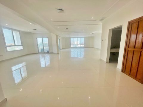 Huge 4 - bedroom duplex with 2 living rooms, balcony, large private terrace, 4 spacious master bedrooms, 2 kitchens, 2 guest toilets, laundry area, and maid room for rent in a nice location in Salwa. Old but fully refurbished property with new ceramics, bathrooms, and kitchen. Strictly for expats only. rent is KD1750. Security deposit and realtor charges apply. Call Ayyaz for viewing and renting now