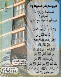 للبيع عمارة في منطقة المهبولة توجد بها العديد من الشقق المؤجرة وكذلك يوجد العديد من العقارات لاستفساراتكم