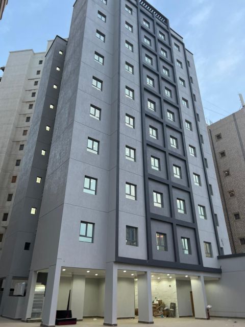 A building for rent in Hawally, first tenant, suitable for companies, schools, and hospitals. 40 apartments, each with a room, hall, bathroom, and kitchen, with parking spaces for cars.