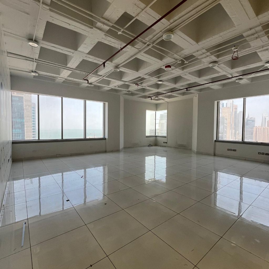 A full commercial floor in Al Qibla, Block 14. Prime location, sea view, area 100 square meters, available with 2 civil numbers, public parking, and a grace period. Rent is 1050 Kuwaiti Dinars + one month's rent as security deposit + company commission.