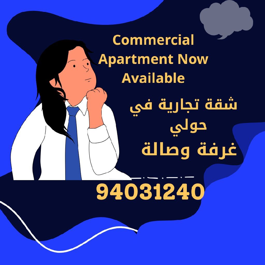 For rent A commercial apartment in Hawally, consisting of a room, a hall, a bathroom, and a kitchen, with high - end finishing. There is a parking lot on a main street. The monthly rent is 350 Kuwaiti dinars. For contact