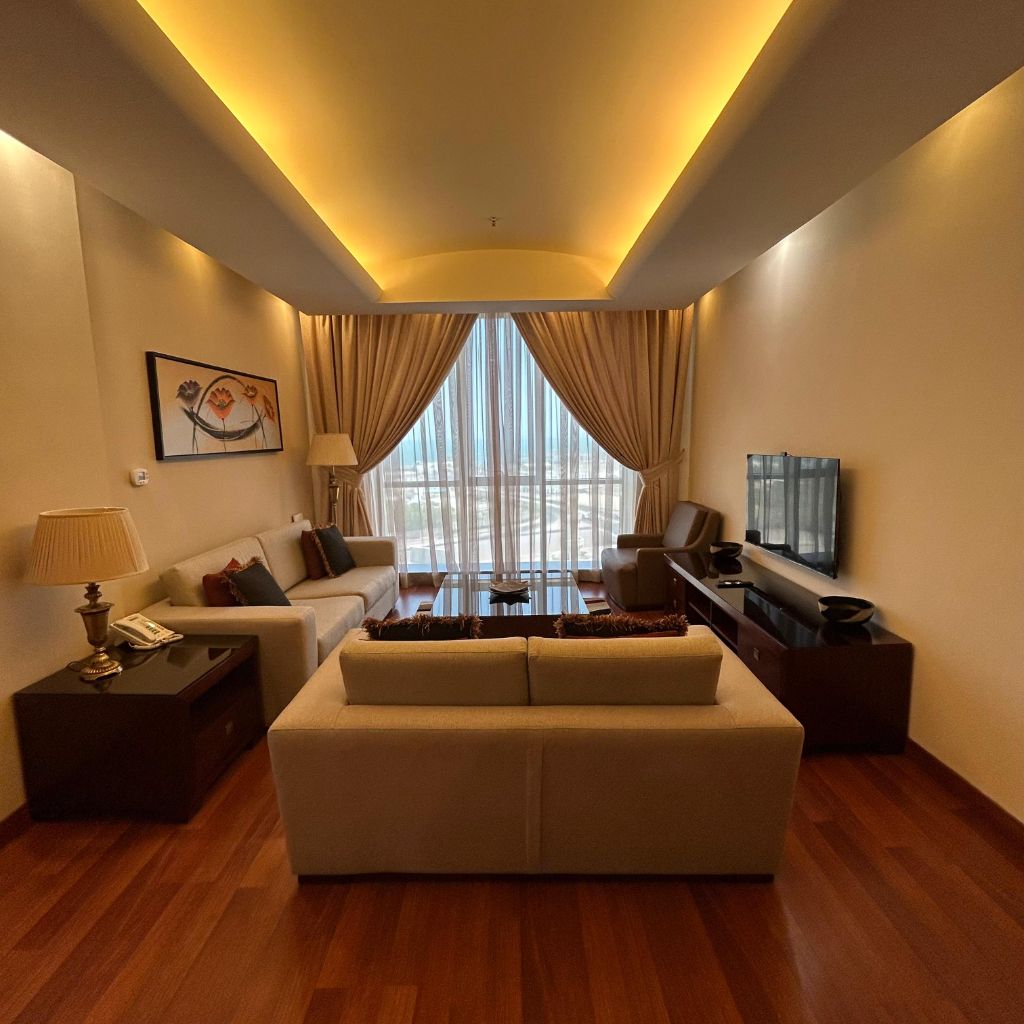 شقة مفروشة للإيجار في شرق، موقع مميز، اطلالة بحرية، تتكون من صالة، مطبخ، غرفتي نوم احداهما ماستر، حمامين، كاميرات مراقبة، أمن، انترنت، صالة رياضية، لوبي، مصعد، ومواقف سيارات. يبدأ الإيجار من 550 دينار كويتي + تأمين + عمولة الشركة