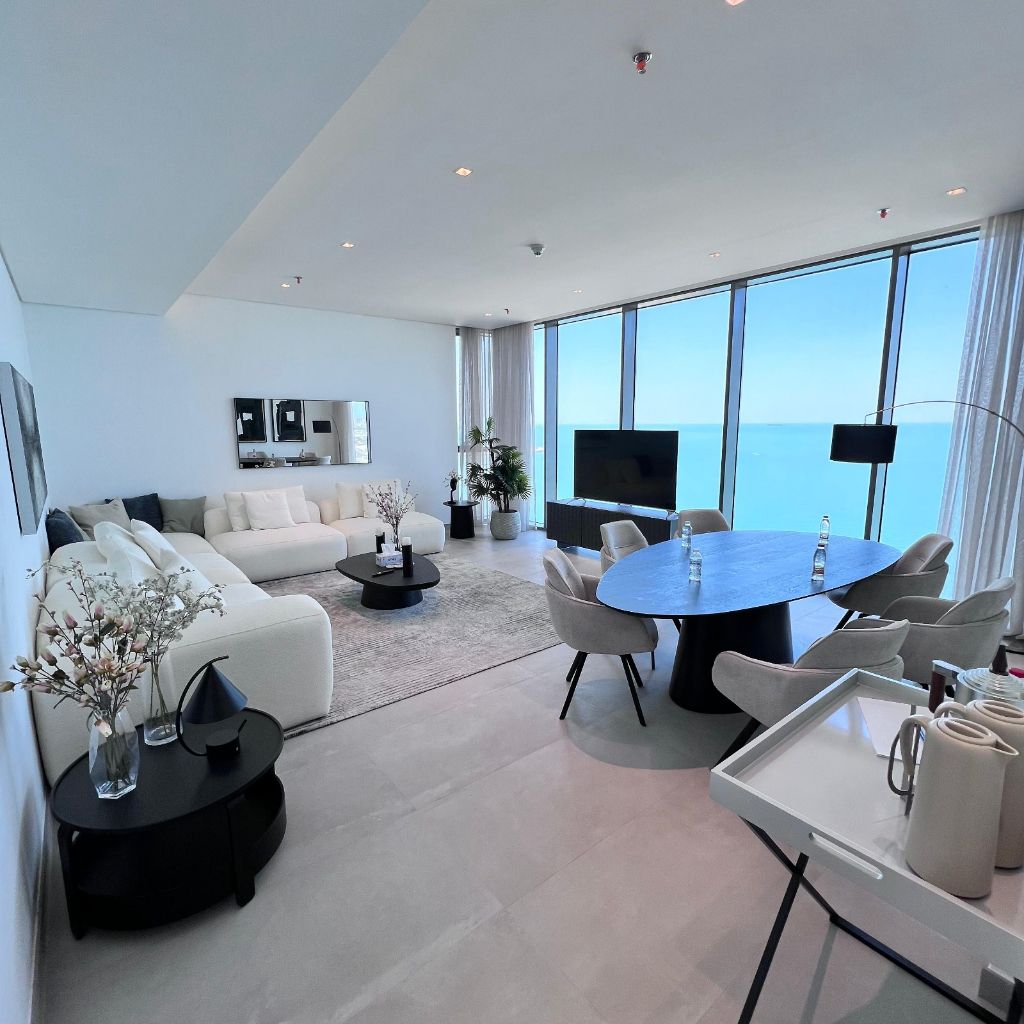 شقة مفروشة باطلالة بحرية مباشرة للإيجار في الشعب البحري. تشطيب سوبر ديلوكس، مفروشة بالكامل، في مجمع سكني راقي، باطلالة بحرية مباشرة. تتكون من غرفتي نوم احداهما ماستر، وصالة، ومطبخ مجهز بالكامل، وحمامين، وبالكونة، ونظام أمن على مدار 24 ساعة، ولوبي استقبال، ومسبح، وصالة رياضية، ومناظر طبيعية، ومواقف سيارات تحت الأرض، تشمل الكهرباء والماء والصيانة. تبدأ الإيجارات من 1175 دينار كويتي، مع تأمين إيجار لمدة