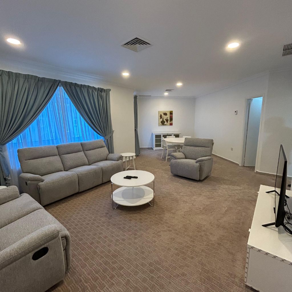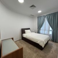 Furnished apartment for rent in Salmiya Block 9 Prime location, excellent finishing, consisting of a living room, kitchen, 3 bedrooms (including a master bedroom) 3 bathrooms, a maid's room with a bathroom, a storage room, surveillance cameras, a swimming pool, internet, children'games, a children'soccer field, a barbecue area, an elevator, and a private parking area. Includes water, maintenance