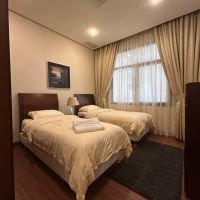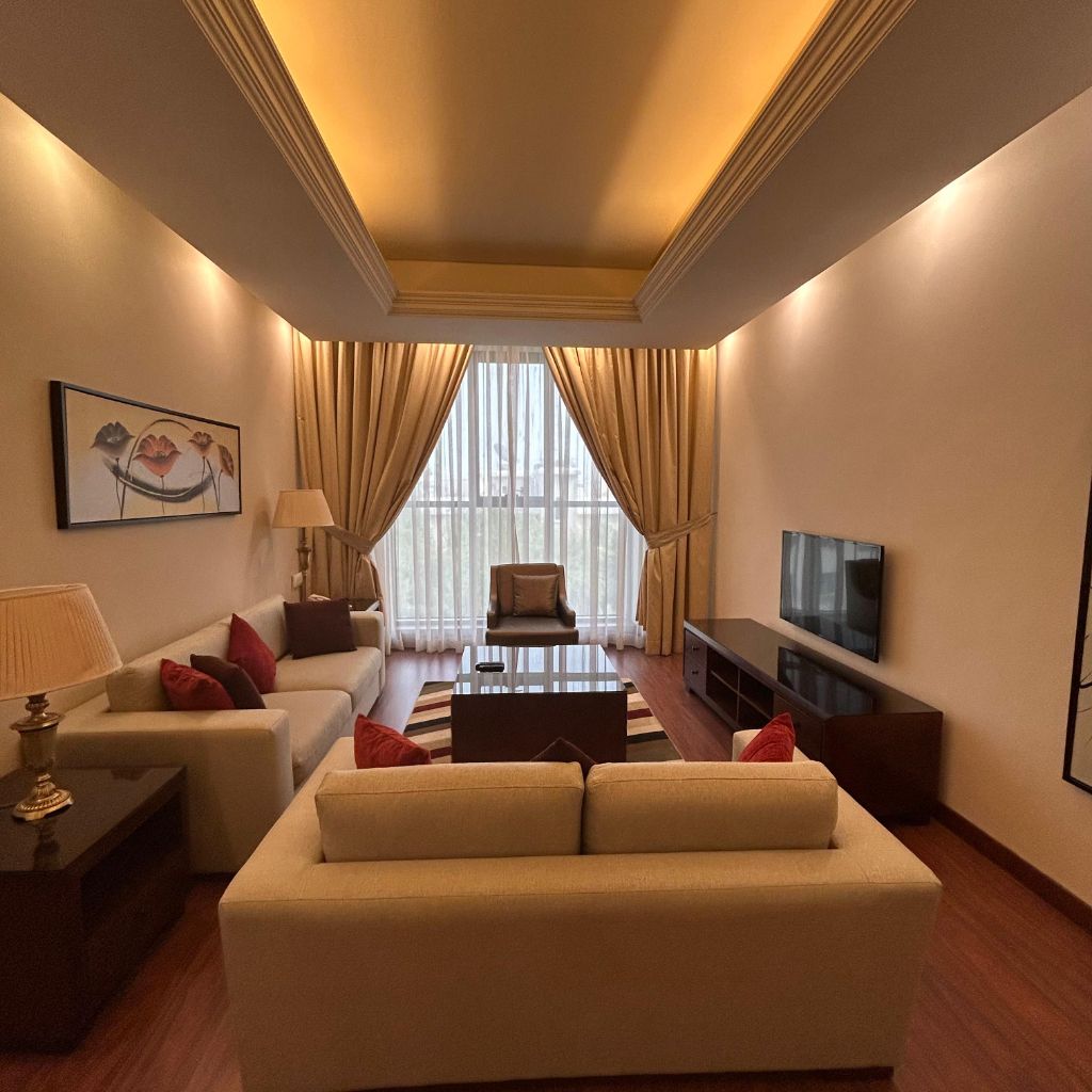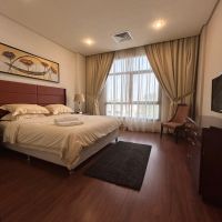 A furnished apartment for rent in Jabriya, prime location, super deluxe finishing. It consists of a living room, kitchen, 2 bedrooms including one master bedroom, 2 bathrooms, surveillance cameras, security, swimming pool, gym, lobby, internet, parking spaces, cleaning service, inclusive of water, electricity, and maintenance. rent starts from KD600 with one month's rent as security deposit plus company
