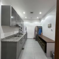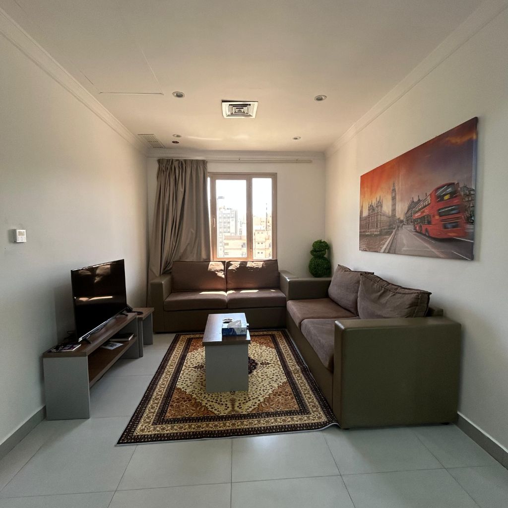 A furnished apartment for rent in Salmiya, Block 6, with a prime location. easy access and exit. It consists of a living room, 2 bedrooms (one of them is a master bedroom) an American kitchen, 2 bathrooms, an elevator, surveillance cameras, a reception lobby, internet, weekly cleaning service, inclusive of water, electricity, and maintenance, parking spaces. Suitable for monthly and annual rental