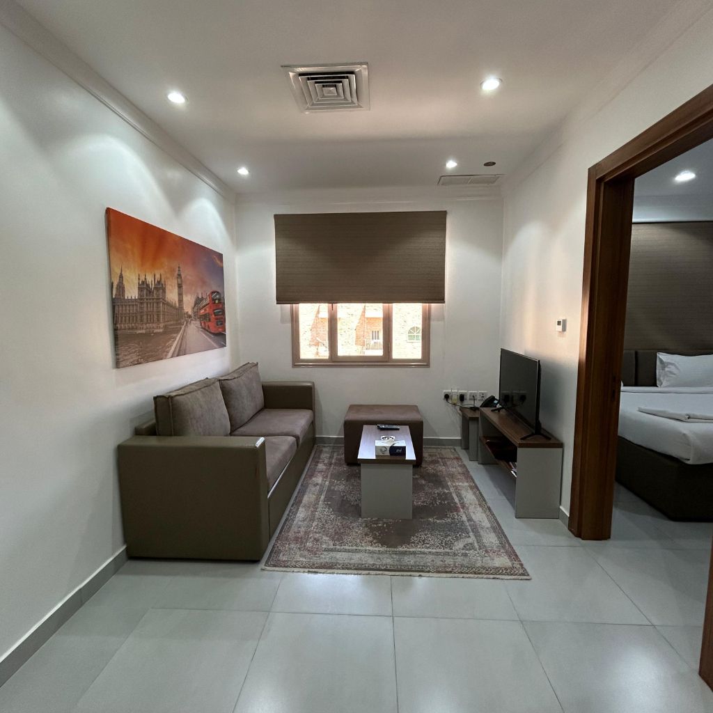 Furnished apartment for rent in Salmiya, Block 6, prime location. easy access and exit. Comprises a living room, one bedroom, American kitchen, one bathroom, elevator, surveillance cameras, reception lobby, internet, weekly cleaning service, inclusive of water, electricity, and maintenance. car parking available. Suitable for monthly and yearly rental. KD360 company commission
