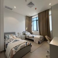 A furnished apartment with a sea view for rent in the Hessa Al-Mubarak suburb in a prime location, with easy access, very high-end finishing, direct sea view, consisting of a living room, a fully equipped American kitchen, 2 bedrooms (one of them a master bedroom), 2 bathrooms (including a guest bathroom), a large terrace, and the building includes a swimming pool, gym, reception lobby, security and cameras, underground parking, with electricity, water, and maintenance included. Rent starts from 950 Kuwaiti Dinars, with one month's rent as security deposit plus the company's commission.