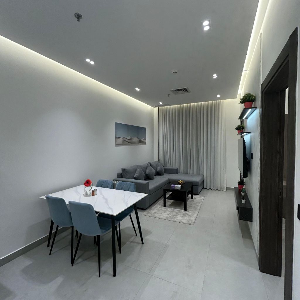 A furnished apartment for rent in Al Sha'ab Al Bahri, a very prime location close to all services, with easy access. It consists of a living room, 2 bedrooms (one of them is a master bedroom), a fully equipped American kitchen, 2 bathrooms. The building includes an elevator, surveillance cameras, a reception lobby, internet, weekly cleaning service, underground parking, and includes water, electricity, and maintenance. The rent is 550 Kuwaiti Dinars, company commission.