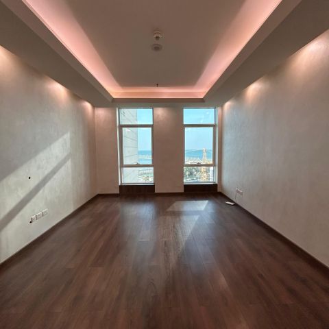 Semi furnished apartment for rent in East Block 3, prime location with sea views, super deluxe finishing, consisting of a living room, 2 bedrooms, one of which is a master bedroom, a kitchen, 2 bathrooms, surveillance cameras, security, a swimming pool, a gym, a lobby, billiards, a table tennis table, internet, and parking. Water, electricity, and maintenance are included. rent starts at KD700 + one