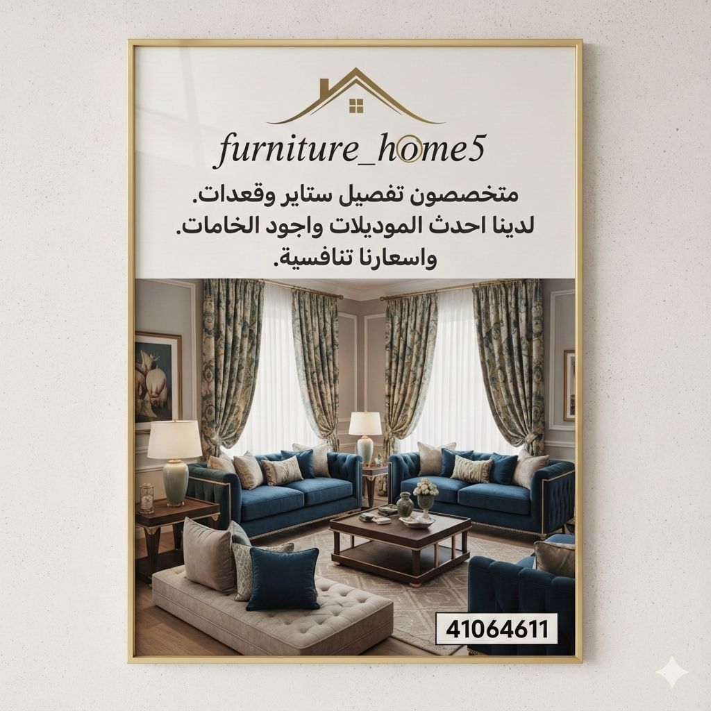 تفصيل وتركيب ستائر وقعدات وتنجيد. لدينا أحدث الموديلات وأجود الخامات، دقة في التنفيذ والمواعيد، وأسعارنا تنافسية. اتصل، يصلك مندوبنا للقياس، يحضر كتالوجات الخام، ويساعدكم في تنسيق الألوان.