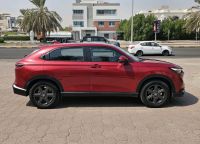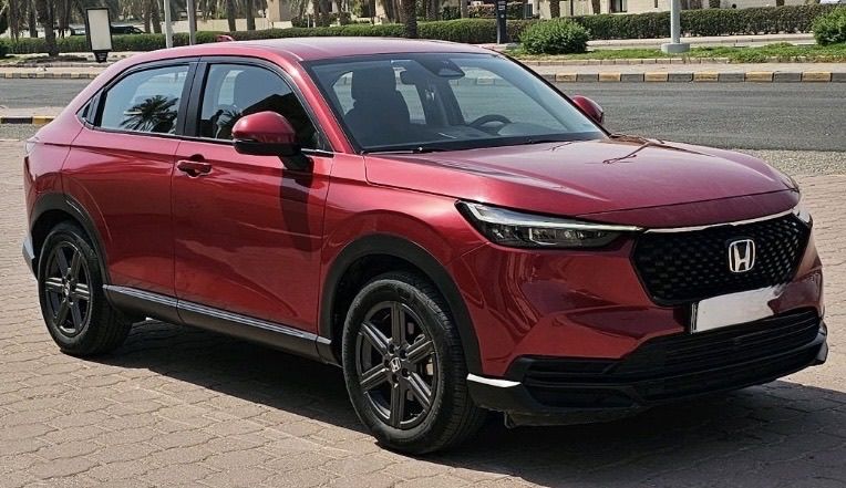 Honda HR-V 2022 model, red color, 1500 cc, agency service, first owner, 33,000 mileage, smart key, screen, rims, cruise control, lane keeping assist, rear AC, two keys, cosmetic paint, under agency warranty. There is a minor scratch on the right side, not from an accident. The car is in agency condition with no use. Price: 4500 Kuwaiti dinars, inspection required for gear, engine, and chassis.