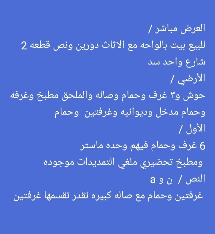 التفاصيل للبيع: أرض في السلام، المرحلة الثالثة، مساحتها 375 متر مربع، تقع على شارع وسكة وساحة، مع ارتداد كبير. السعر: 395 ألف دينار كويتي. للاستفسار، اتصل بشركة المختار العقارية، رقم الترخيص 20228825، أبو محمد.