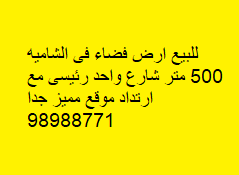 For sale vacant land in Al - Shamiya, area of 500 SQM, located on one main street with setback, very prime location review 1100000
