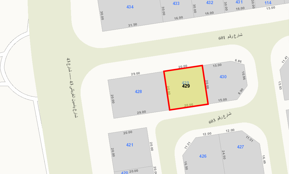For sale: A land in Al Zahra, Sector 6, with front and back access and a 9-meter setback, located on an internal main street. The area is 400 square meters with a wide frontage of 20 meters. Easy entry and exit onto the airport road. Price is 525,000 KWD. New code: 5580. "Darwazat Al Safat Real Estate" for contact - Commercial license number / 1234 - 2013.