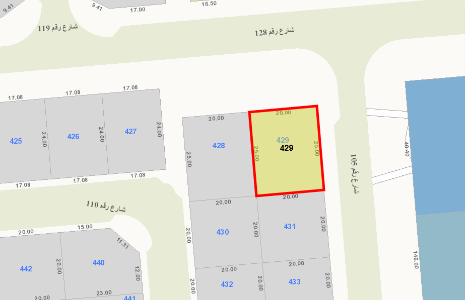 For sale, a land in Al-Salam, C1. Area: 500 square meters, eastern frontage, corner of two streets, with a very large setback on an internal main road, near school parking, close to the mosque, freehold document, new code 5772. "Darwaza Al-Safat Real Estate" for contact - Commercial license number / 1234 - 2013.