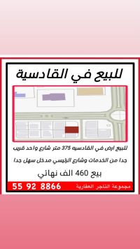 For sale, a land in Al-Qadisiyah, 375 square meters, on a single street, very close to services and the main road, with very easy access. Final price: 460,000 KWD, plot number 8.