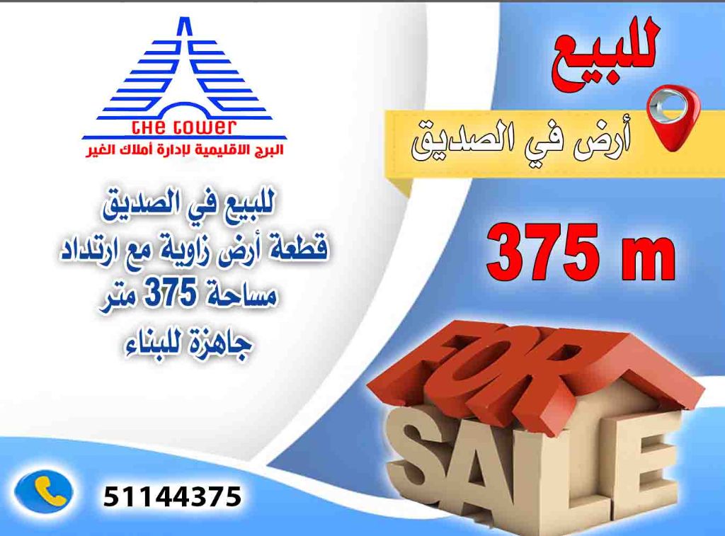For sale in Al-Sadeeq, a corner land plot with an area of 375 square meters, ready for construction. For inquiries.