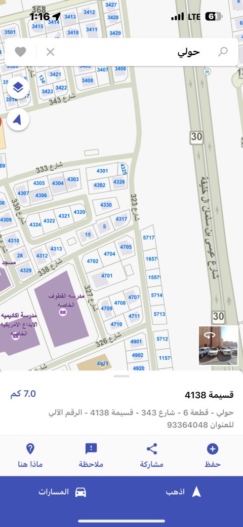 For sale, a land in Abu Fatira, Sector 3, on a single street, area 400m, close to the cooperative, easy entrance and exit on King Abdulaziz Road, price negotiable, reference number 7032.