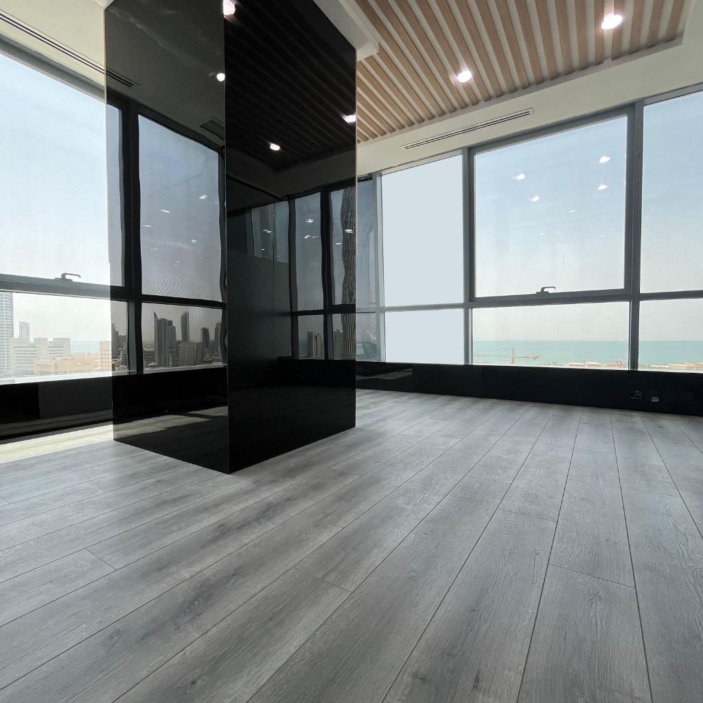 Sea view commercial floor for rent in East Block 5, prime location. Total area 220 SQM with services. 2 civil ID numbers available, parking space available, 2 designated parking spaces. One - month grace period. Suitable for all commercial activities. Multiple floors of varying sizes are available, and prices vary by floor. rent KD1850 + one - month rental deposit + company commission