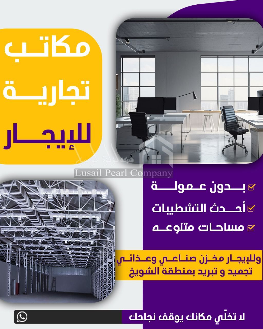 For rent: industrial and food storage warehouses in the Shuwaikh Industrial Area, with various sizes and suitable prices. Easy location, no commission.