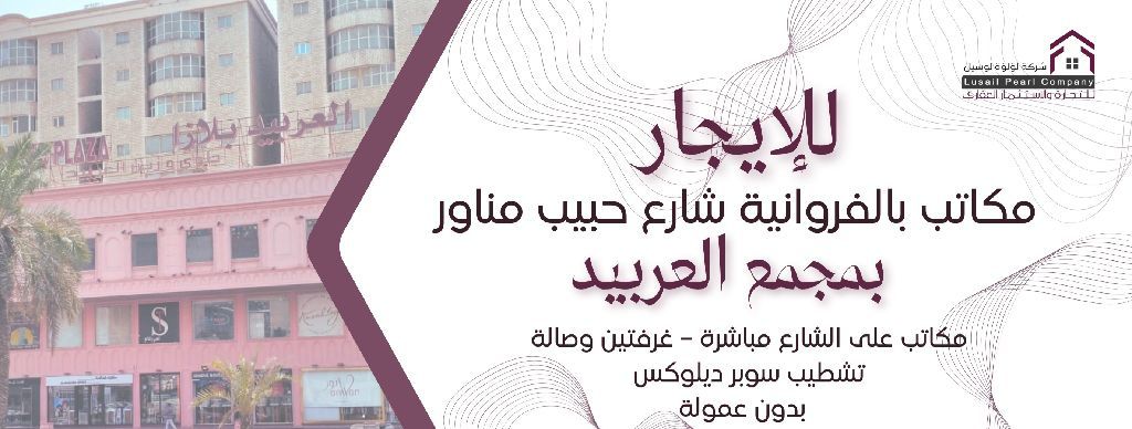 Commercial offices in the most famous complexes in Farwaniya, Al - Arabid Plaza, with various areas and negotiable prices, without vacancy and without commission. There are car parking, security, and continuous maintenance services. Book now