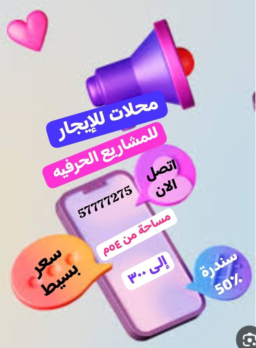 Shops for rent at the best prices in Al - Rai, suitable for pet activities, printing press, carpentry, air conditioning duct, aluminum, starting from 54 SQM with a 50% sanding license provided, for contact