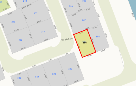 For sale, a plot of land in Al-Salam, District 3, with front and back access, located on an internal main street. Setback approximately 9 to 10 meters, close to a mosque and school parking. Area: 492 square meters, frontage: 17 meters, easy entry and exit. New code: 6116. "Darwaza Al-Safat Real Estate" for contact - Commercial license number / 1234 - 2013.