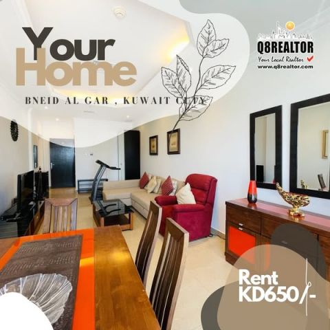 شقة فاخرة مفروشة بغرفة نوم واحدة في الجابرية. صالة معيشة كبيرة، منطقة طعام، مطبخ مفتوح مجهز. المرافق تشمل صالة رياضية، مسبح، قمر صناعي، وانترنت. الإيجار 550 دينار كويتي (غرفة نوم واحدة) الشروط والاحكام تنطبق. رسوم الوسيط ووديعة قابلة للتطبيق. رقم الترخيص 2024 / 25805. رقم السجل التجاري 509152