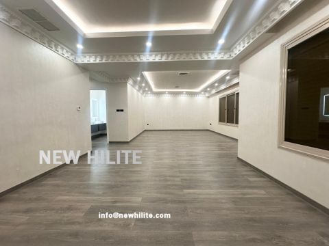 Super Deluxe 4 - bedroom apartment in Rumaithiya with two master bedrooms, a spacious living room, a closed kitchen, a guest toilet, a maid's room with a bath, and parking. Modern layout with shutter windows, ideal for families. rent KD725