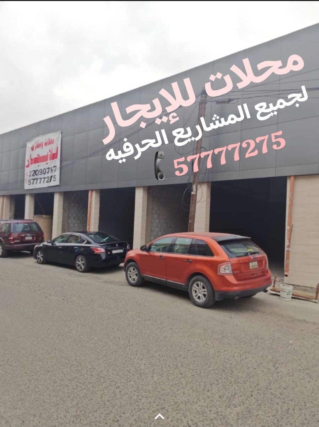 In a prime location in Al-Rai, shops for rent for all types of craft projects, area 58 square meters without commission, and larger spaces are available. For contact.