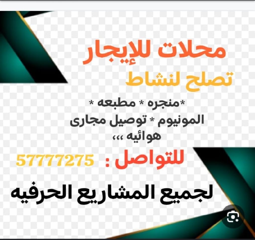Start a successful project. We have shops in Al-Rai for all craft activities, with an area of 58 square meters in a unique location. For contact.