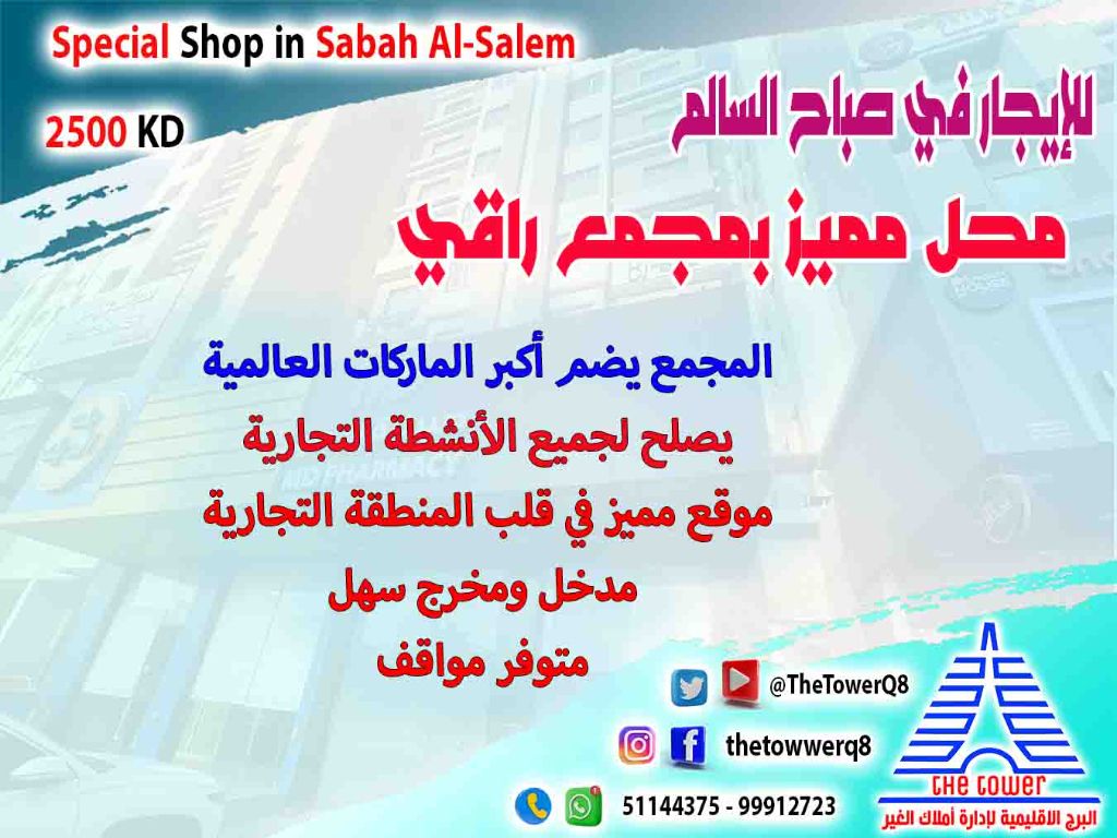 For rent in Sabah Al Salem, a commercial shop in a very upscale commercial complex with a prime location that includes the largest international brands. Suitable for all commercial activities. rent is 2500KD. For inquiries