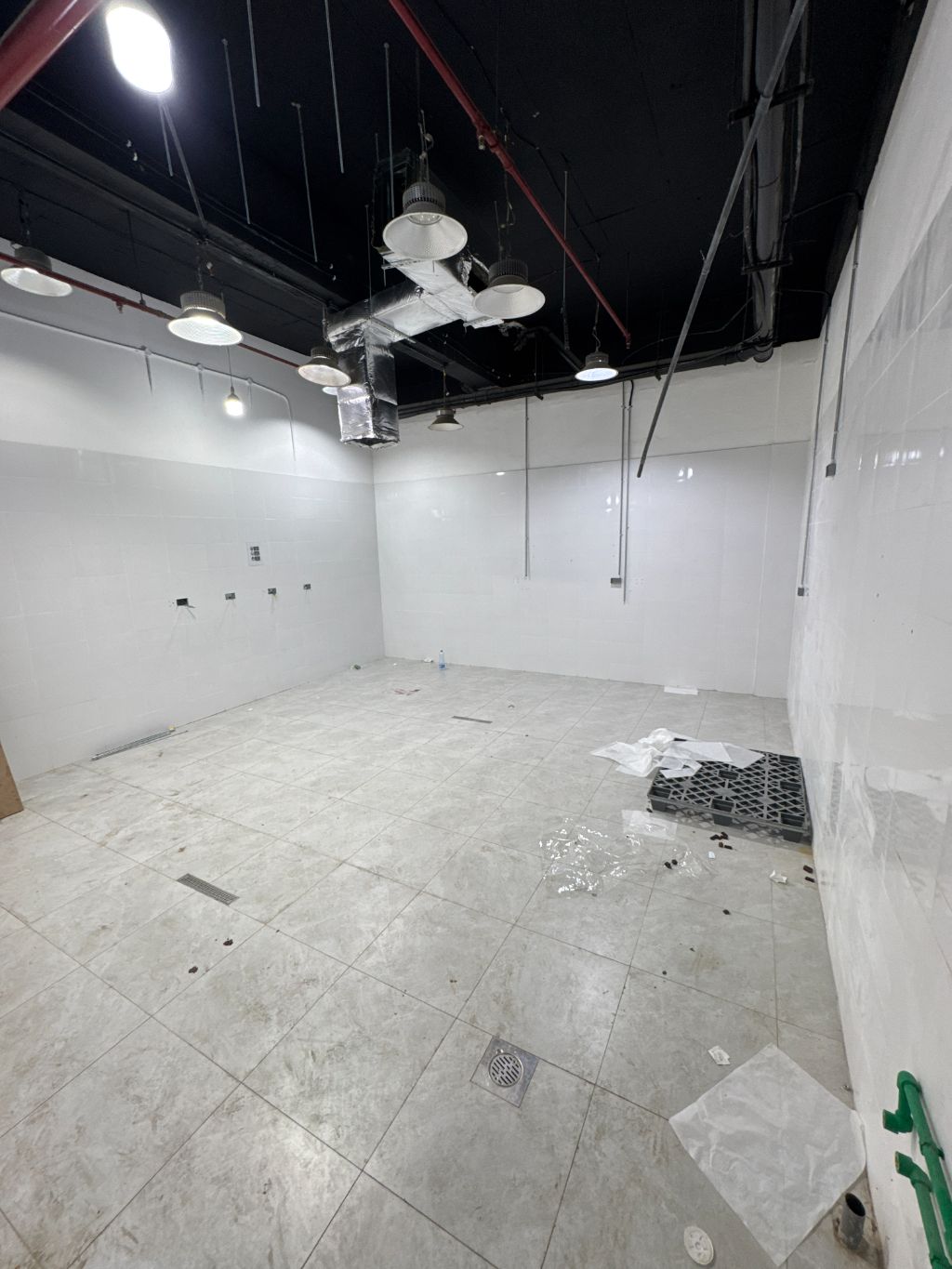 A basement for rent in the Qurein markets, with an area of 500 square meters, in a prime location. It includes a loading and unloading elevator, plus 2 staircases, with all necessary licenses. Suitable for central kitchen activities, with air conditioning extensions available (without the machines). The rental value is 2750 Kuwaiti dinars.