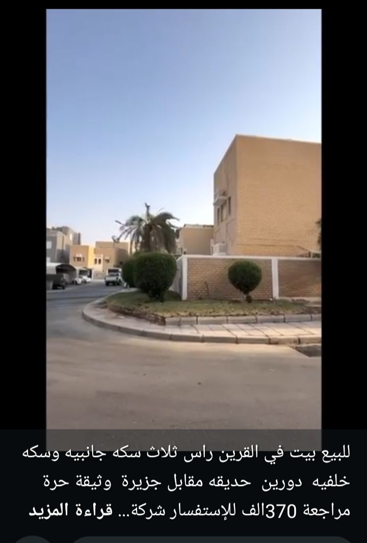 للبيع بيت في القرين رأس، ثلاث سكك جانبية وسكة خلفية، دورين، مقابل جزيرة، وثيقة حرة، السعر 370 ألف دينار كويتي. للاستفسار، شركة المختار العقارية، أبو محمد.