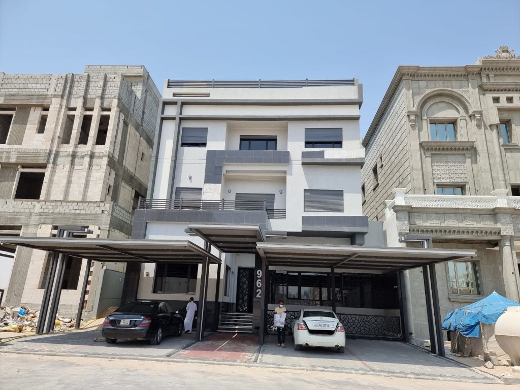For sale, a villa in West Abdullah Al-Mubarak, Plot 5, area 400 square meters. Located with front and back access on an internal main street, consisting of 3 floors, a quarter floor, and a basement. Excellent entrance and exit. Built in 2020. Price 530,000 Kuwaiti dinars. License number 3192 / 2015.