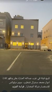 For sale, a villa in West Abdullah Mubarak, with three floors, an elevator, central air conditioning, and super deluxe finishing. For inquiries, contact Al-Mukhtar Real Estate Company, Abu Muhammad.