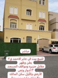 Direct offer for sale: a plot in Jaber Al-Ahmad, Piece 2, location with front and back on a main street opposite an island and a mosque square. Area 400 meters. The plot allows for 3 floors and a quarter ground floor, first residential floor for the owner, and 3 rented apartments. Two staircases and an elevator. Price 460 thousand. Seller: Abu Mustafa, Al-Raya Group Real Estate Company, license number 2016/6192.