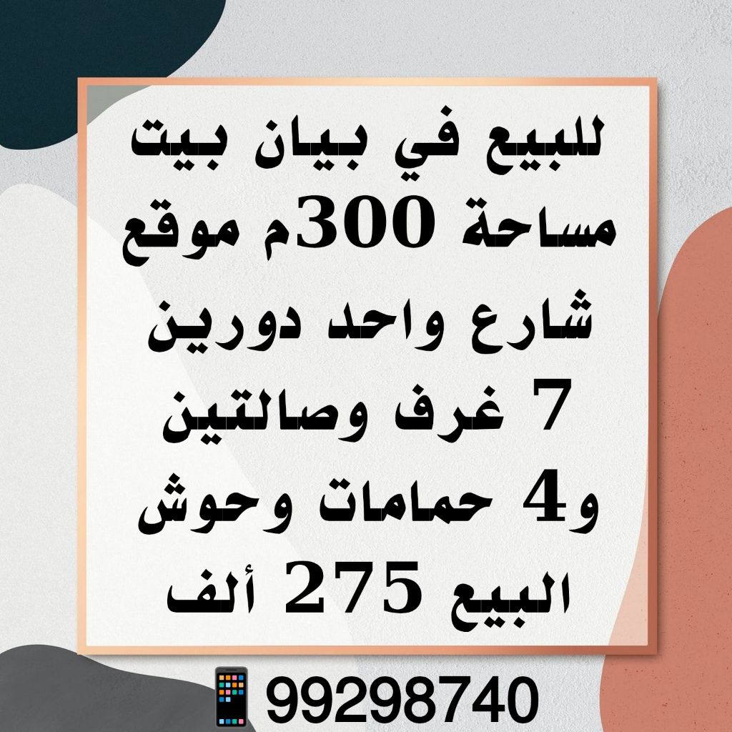 For sale in Bayan, a house with an area of 300 square meters, located on a single street, two floors, 7 rooms, two halls, 4 bathrooms, and a courtyard. Sale price: 275 thousand.
