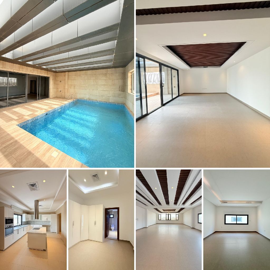 بنتهاوس في الدورين الثاني والثالث للإيجار في السرة لعشاق الفخامة والخصوصية، مع بلكونة وحمام سباحة خاص. المساحات المتاحة تشمل 5 غرف نوم ماستر مع كبتات، وصالتين، ومطبخين مجهزين بالكامل، وغرفة خادمة مع حمامها الخاص، ومخزن، وغرفة غسيل، وغرفة سائق، و4 مواقف سيارات. يوجد براحة قريبة. الإيجار 2500. للاتصال أخوكم أمير. يوجد عمولة نصف شهر وتأمين. متوفر: فيلا بحديقة بسعر 2750.