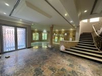 For rent, a villa in Salwa, Plot 11, consisting of two floors. The ground floor contains living rooms, a kitchen, a bedroom, a maid's room, a driver's room, and 3 bathrooms. The first floor contains 4 bedrooms, including two master bedrooms and two bedrooms sharing a bathroom. For more details, call 1