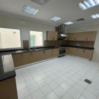Villa for rent in Al Salam, Block 6. It consists of two and a half floors with an elevator, six bedrooms, four of which are master bedrooms, six bathrooms, two living rooms, a salon with guest washrooms, a private swimming pool, a large courtyard, a kitchen, a driver's room with a bathroom, a maid's room with its own bathroom, a laundry room, guest washrooms, and a guest washroom, four shaded parking