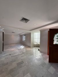 For rent, a villa in Al Messila consisting of two floors and a basement, in a strategic location directly on Fahaheel. Details of The Villa 5 bedrooms (including 2 master bedrooms) 2 living rooms, a fully equipped kitchen, a maid's room, a laundry room, a driver's room, a backyard garden, and a large front setback