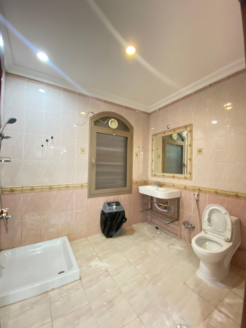 For rent a villa in Al - Qirwan with two and a half floors and a garden, located at the head of three streets. It has 7 bedrooms, living rooms, a diwaniya, driver's room, a domestic worker's room, a laundry room, and a storage room, opposite a mosque. The rent is 1700 Kuwaiti dinars