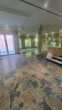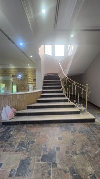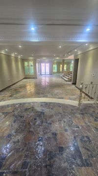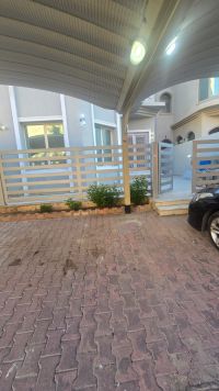 For rent: A residential villa in the Salwa area, Plot 11, with an area of 375 square meters. It consists of two floors. The first floor contains two large reception halls, a guest bathroom, a guest room, a large kitchen, a storage room, a maid's room, and a guard's room, with 5 shaded car parking spaces. The second floor contains 4 bedrooms, including two master bedrooms and two bedrooms sharing a bathroom. The rent is 1600 dinars, negotiable for serious inquiries.