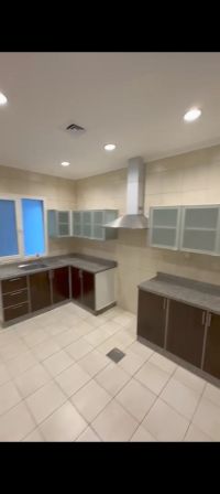 For rent, in Al-Masayel, a complete ground floor in a prime location, super deluxe finishing, elegant with a private entrance without stairs. It consists of a hall with a guest bathroom and sink, 5 master bedrooms each with its own private bathroom, a maid's room with its own private bathroom, a fully equipped kitchen, a laundry room, and central air conditioning. Prime location close to services. Covered parking. Rent is 850 Kuwaiti dinars. Brokers are prohibited.