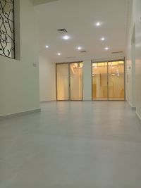 For rent: A duplex in Jabriya, Block 9, consisting of a ground floor and a basement with deluxe finishing. Two connected floors with a courtyard for family gatherings and 4 bedrooms. The ground floor contains a large living room with a guest bathroom and washbasins, and one master bedroom in the basement. Four bedrooms including one master and two bedrooms sharing a bathroom, a fully equipped kitchen, a maid's room with its own bathroom, and a laundry room that can be used as storage. There are 2 shaded parking spaces. Rent is 950 Kuwaiti Dinars. Brokers are prohibited.